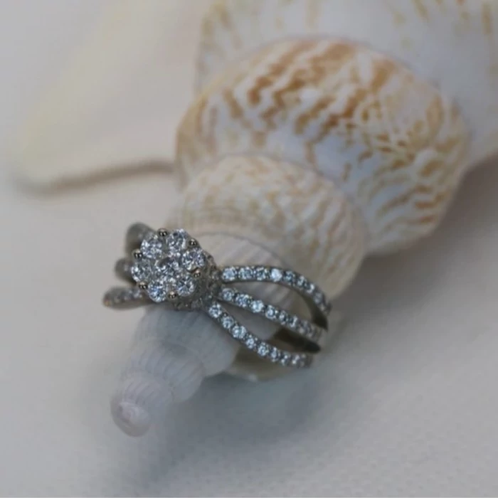 انگشتر نقره زنانه سولیتر پایه بلند 537