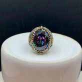 انگشتر نقره مردانه کوارتز هفت رنگ برنزکاری شده-1741