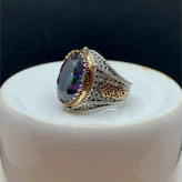 انگشتر نقره مردانه کوارتز هفت رنگ. این محصول دارای آبکاری رزگلد و سیاه قلم میباشد.