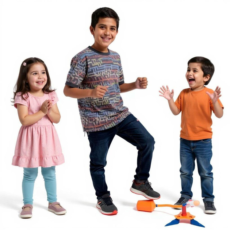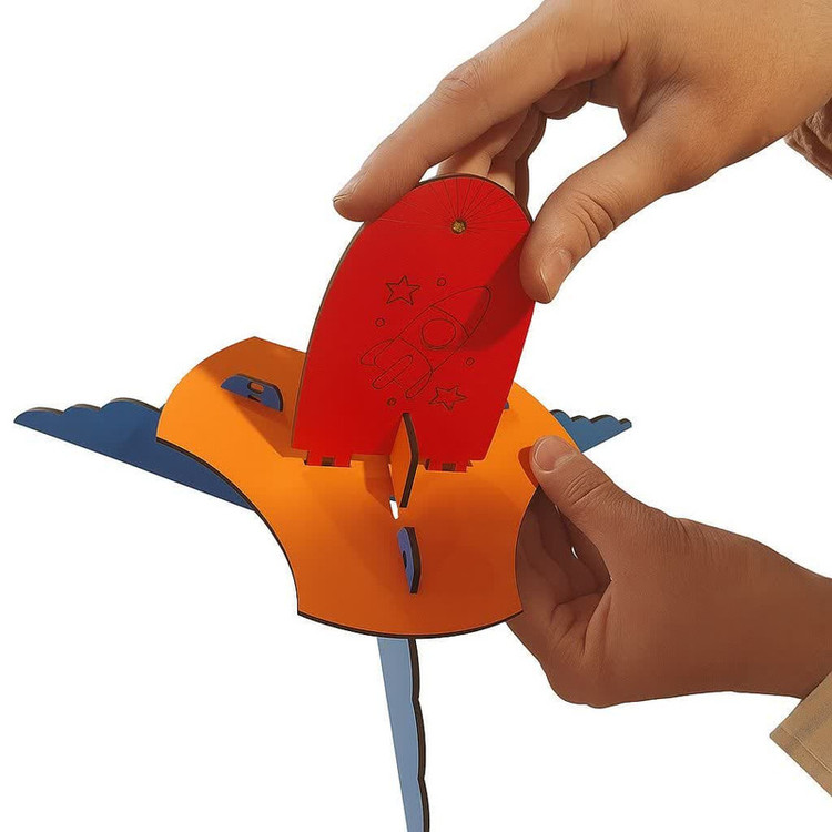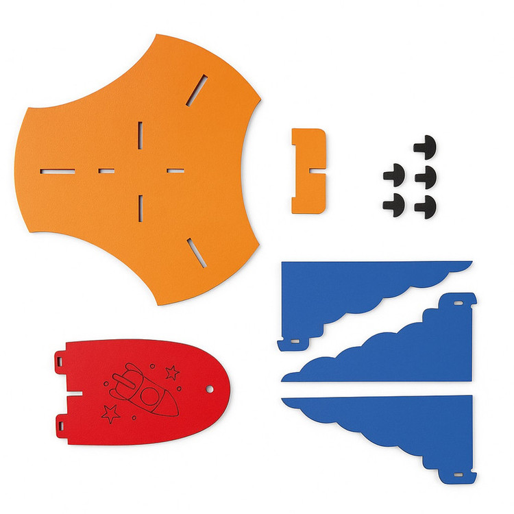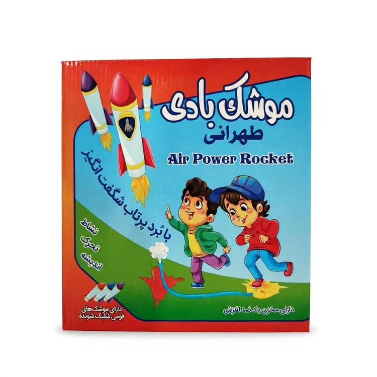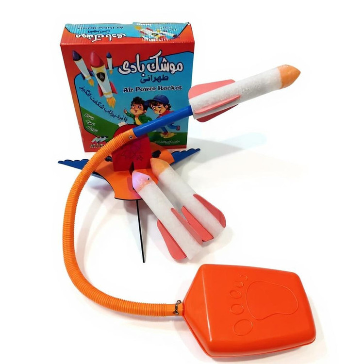 3 عدد موشک فومی (2 موشک بدون چراغ و 1 موشک چراغدار چندرنگ) قطعات MDF ساخت سکوی پرتاب 1 عدد مخزن (پمپ) هوای پدالی 1 عدد شلنگ رابط 1 عدد لوله پرتاب پیچ و مهره و بست های اتصال 1عدد برگه راهنمای تصویری و مأموریتهای بازی