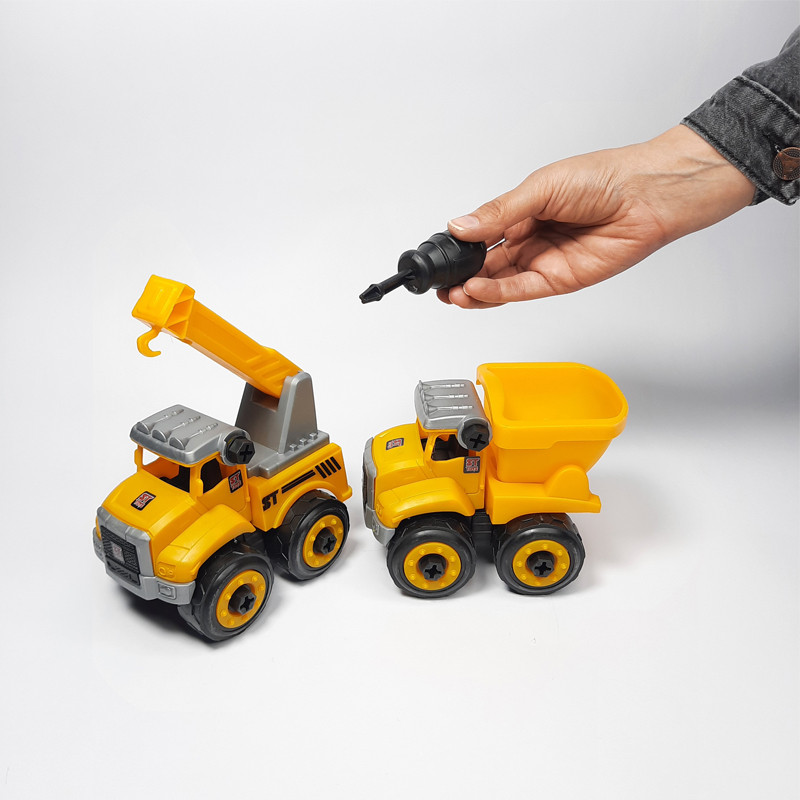 سایر توضیحات- دارای یک عدد پیچ گوشتی - قابلیت باز کردن و بستن مجدد قطعات - دارای یک عدد کامیون و جرثقیل