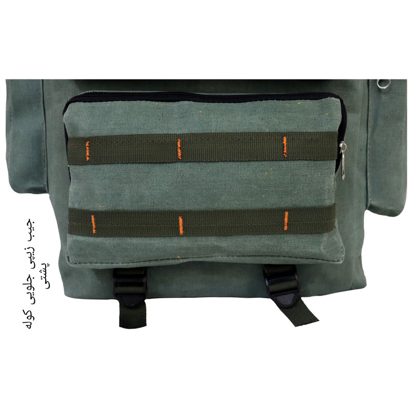دارای یک محفظه زیپی جهت قرار دادن وسایل کوه نوردی و سفر - دارای یک جیب زیپی در قسمت جلویی کوله - دارای دو جیب زیپی جهت قرار دادن بطری نوشیدنی در دو طرف کوله