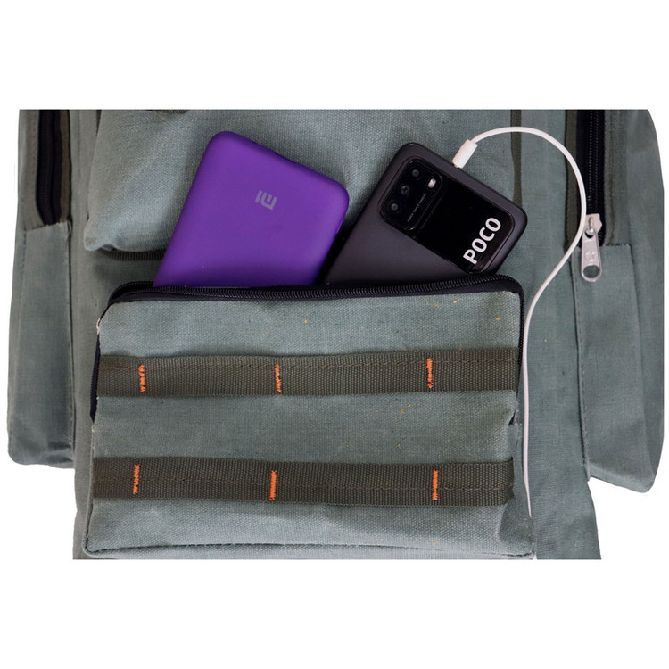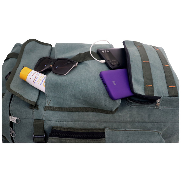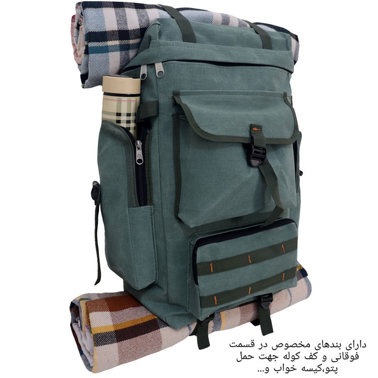دارای یک محفظه زیپی جهت قراردادن وسایل کوهنوردی و سفر دارای یک جیب زیپی در قسمت جلویی کوله دارای دو جیب جهت قراردادن بطری نوشیدنی در دوطرف کوله