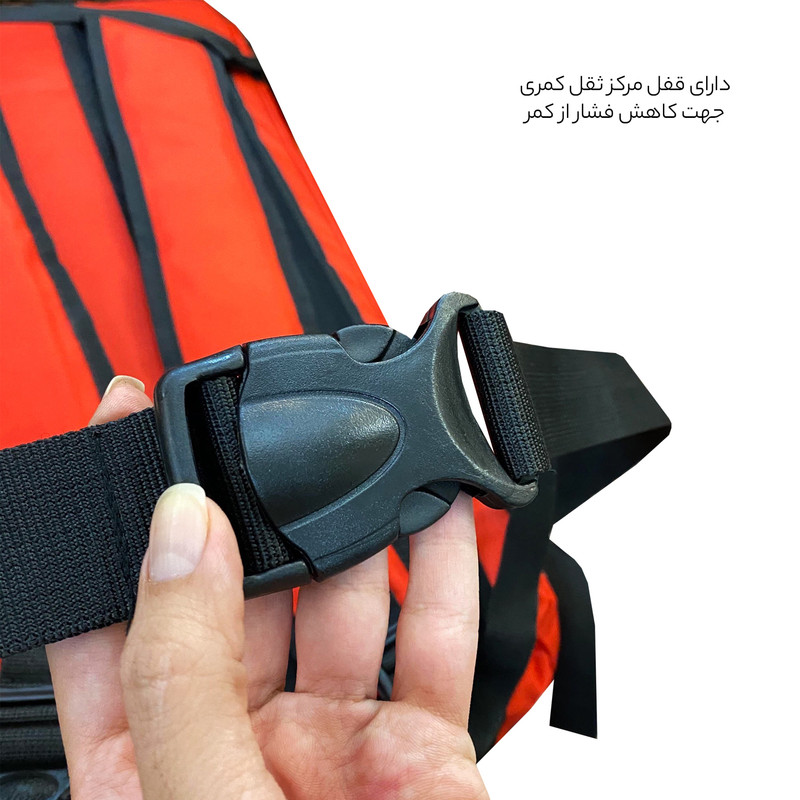 دارای دو دسته بوکسلی در قسمت رویی بدنه کوله جهت استفاده به صورت دستی و یا دو نفره دارای یک دسته از جنس نوار جهت حمل به صورت دستی دارای دو بند کولی جهت حمل به صورت کولی