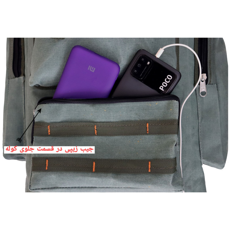 دارای یک محفظه زیپی جهت قراردادن وسایل کوهنوردی و سفر.دارای یک جیب زیپی در قسمت جلویی کوله پشتی.دارای دو جیب زیپی جهت قراردادن بطری نوشیدنی در دوطرف کوله پشتی