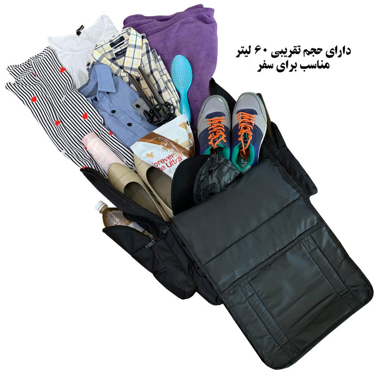 دارای یک جیب زیپی بسیار یزرگ قابل باز شدن به صورت چمدانی جهت قرار دادن وسایل سفر و دسترسی آسان به وسایل دارای دو جیب زیپی بزرگ در دو طرف کوله جهت قرار دادن وسایل و یا بطری نوشیدنی تا 1.5 لیتر دارای دو جیب زیپی در قسمت رویی کوله