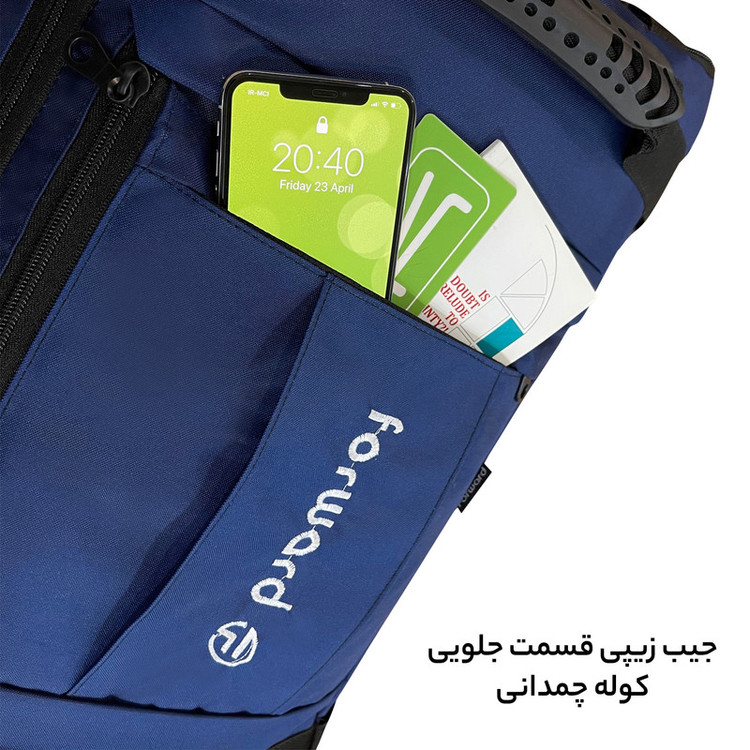 دارای یک محفظه بزرگ باز شونده به صورت چمدانی جهت دسترسی آسان به وسایل دارای یک جیب زیپی به صورت عمودی در قسمت رویی کوله دارای یک جیب زیپی افقی در قسمت رویی کوله