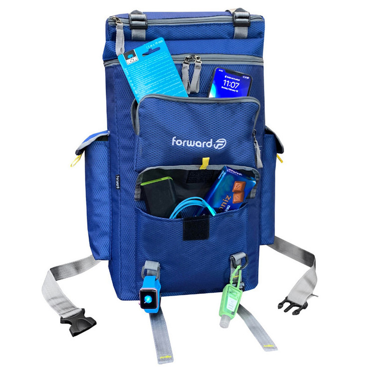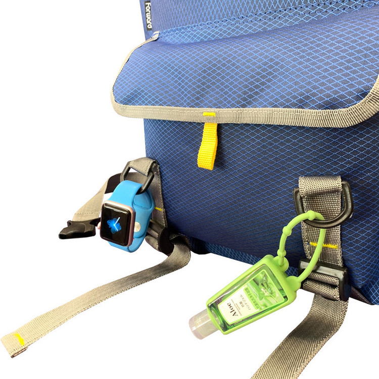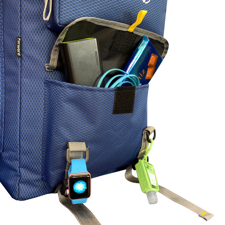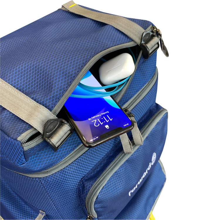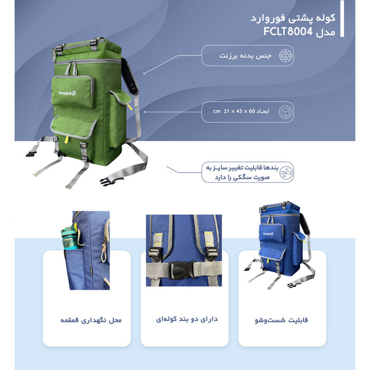 دارای یک جیب زیپی مجزا در قسمت بالای کوله دارای یک جیب زیپی و یک زیپ چسبی در قسمت جلوی کوله دارای دو جیب زیپی بزرگ در دو طرف کوله جهت قرار دادن وسایل و یا بطری نوشیدنی تا 1.5 لیتری