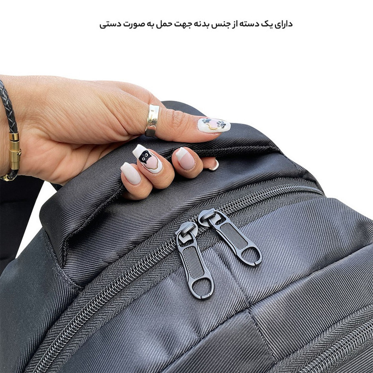 دارای یک دسته از جنس بدنه جهت حمل دستی دارای یک بند از جنس نوار جهت آویزان کردن کوله دارای دو بند کولی جهت حمل به صورت کوله ای
