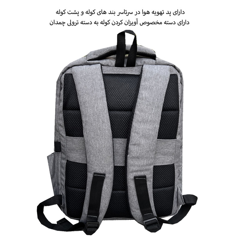 سایر توضیحات : دارای پد تهوبه هوا در سر تا سر قسمت پشتی کوله