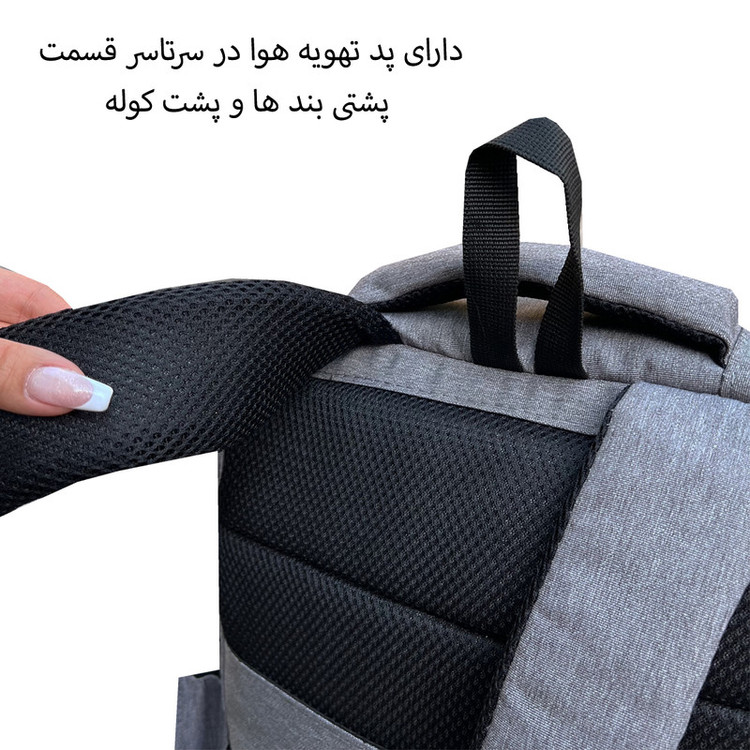 دارای دو بند کوله همراه با پد تهوبه هوا در قسمت پشتی