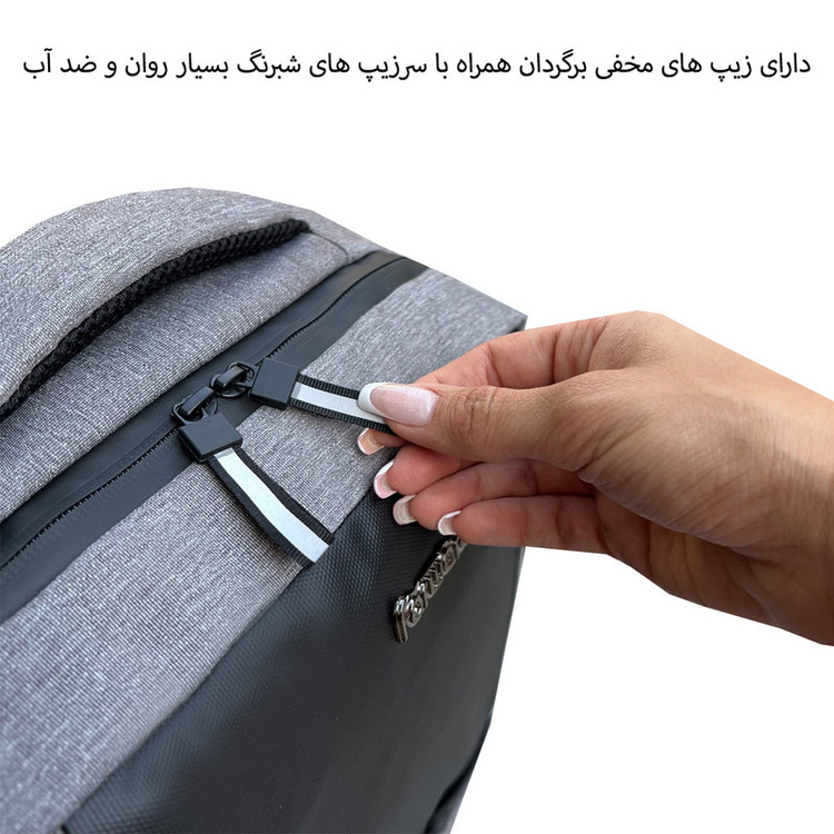 توضیحات جیب : دارای یک محفظه اصلی جهت حمل تمامی وسایل روزانه و لپتاپ