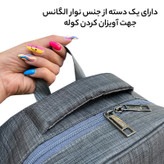 توضیحات دستهدارای یک دسته از جنس نوار الگانس جهت حمل به صورت دستی و یا آویزان کردن کوله دارای دو بند کولی همراه با پد تهویه هوا در قسمت پشتی جهت حمل به صورت کوله دارای یک دسته جهت حمل به صورت دستی همراه با پد تهویه هوا