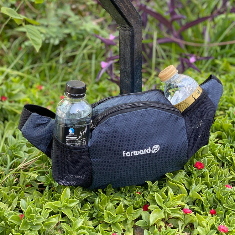 دارای یک زیپ مخفی در قسمت پشتی کیف کمری دارای 2 زیپ بزرگ در قسمت جلویی کیف کمری دارای دو جیب توری کش دار جهت قرار دادن وسایل و بطری نوشیدنی