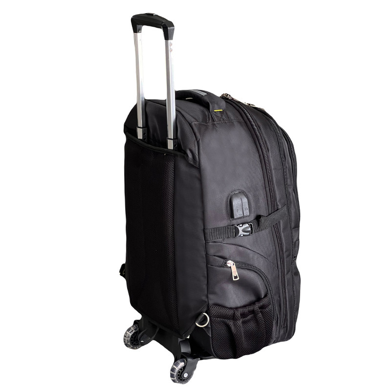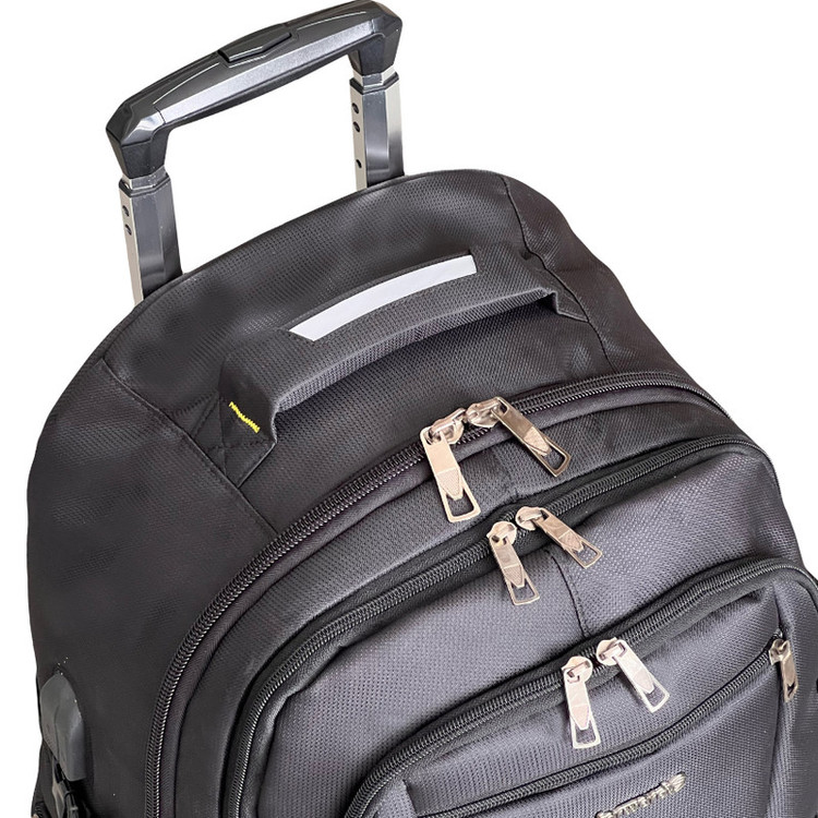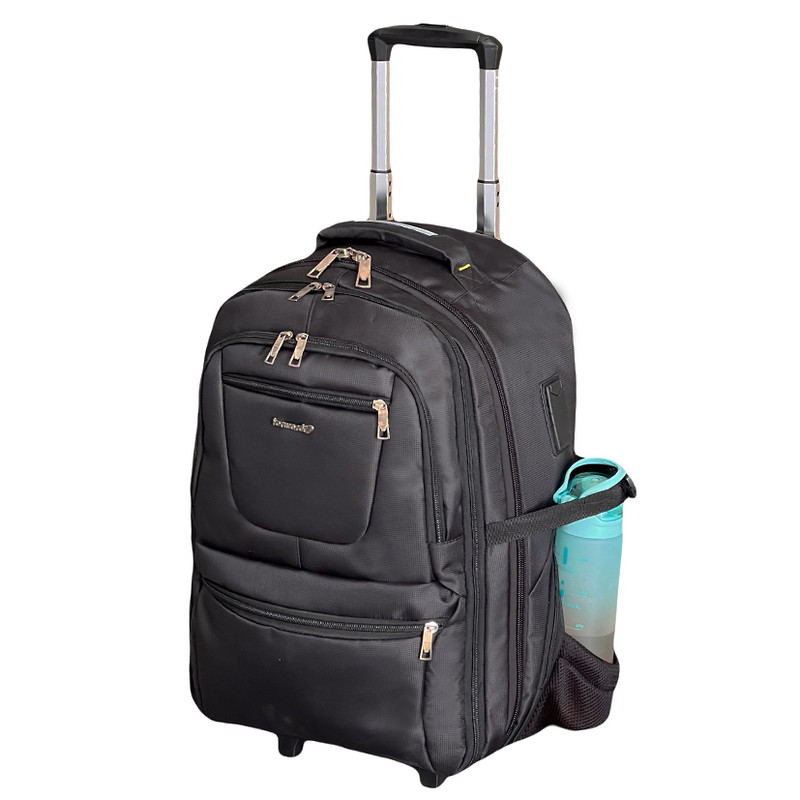 دارای یک دسته ترولی وارداتی قایل جدا شدن به همراه چرخ های اسکیتی روان دارای یک دسته جهت حمل به صورت دستی دارای دو بند دوشی جهت حمل به صورت کوله ای