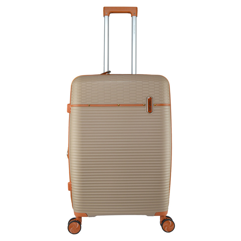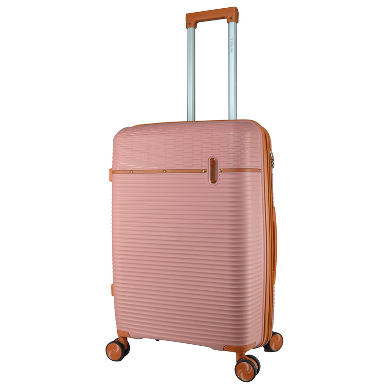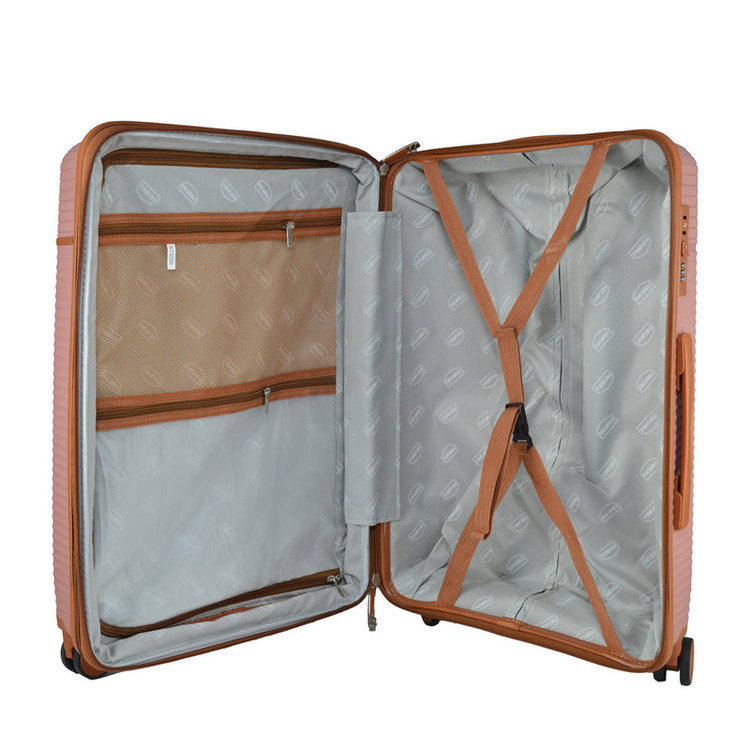 بدنه پلی پرو پیلن که ورقیست مشابه پلاستیک در قطعات خودرو ، صنایع پزشکی ، لوازم خانگی چمدانهای و... استفاده میشود بسیار سبک است و مقاوت بالایی دارد و البته قیمت ارزانتری نسبت به ورق پلی کربنات دارد ، به لحاظ محیط زیستی هم در اکثر مواقع قابل بازیافت میباشد سطح ورق کمی لیز است و بهتر است چمدانی که از این جنس ساخته شده کمی آج داشته باشد تا از روی سطوح مختلف لیز نخورد . آستر داخل چمدان اهمیت دارد چون چمدان شما دائما در طول سفر همراه شماست و مواد پلی استر بی کیفیت بوی نامطبوعی را در طول سفر برای شما ایجاد خواهد کرد و ممکن است رو بقیه لباسهای شما این بوی نامطبوع باقی بماند که بی شک حس ناخوشایندی دارد. آستری این مدل از مواد پلی استر بسیار با کیفیت ساخته شده و جای نگرانی از این بابت وجود ندارد. همچنیین استری این مدل دوخت با کیفیتی هم دارد. یراق چمدان یعنی زیپ دسته و چرخهای چمدان همگی نمره ی قابل قبولی میگیرند زیپ دوبل دسته ی تلسکوپی پایدار در هر پله و چهار چرخ دوبل 360 درجه و زیپ افزایش فضا و از همه مهمتر قفل TSA که در سفرهای هوایی بسیار واجب است در این مدل وجود دارد.