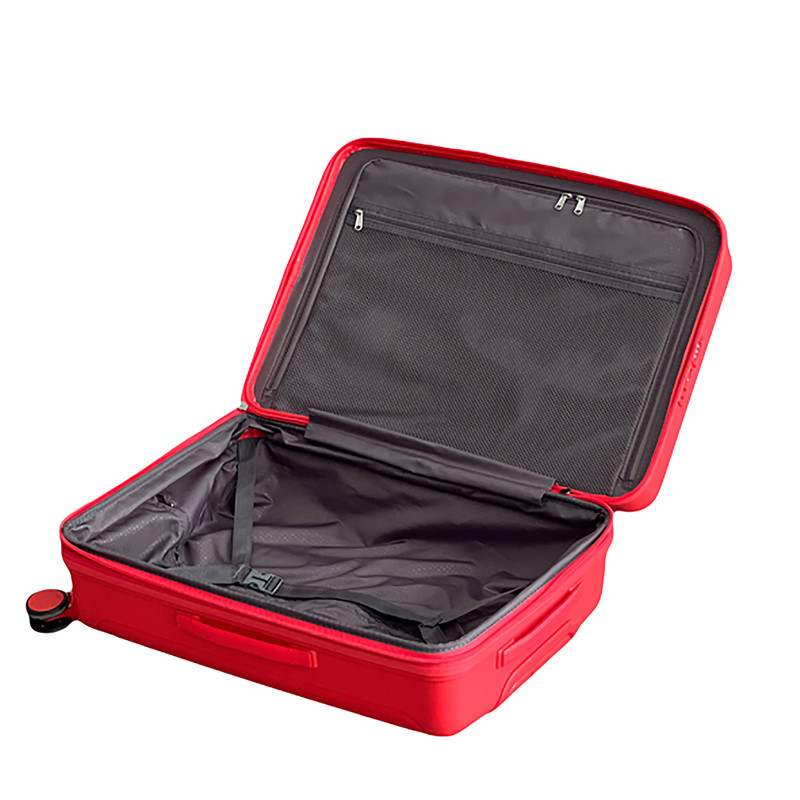 طراحی هوشمندانه این چمدان شامل محفظههای متعدد و بند داخلی برای نظمدهی به وسایل و جلوگیری از جابجایی آنها در طول سفر است.