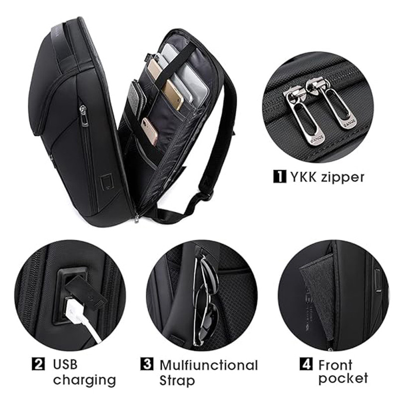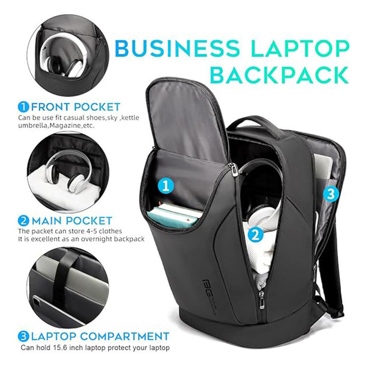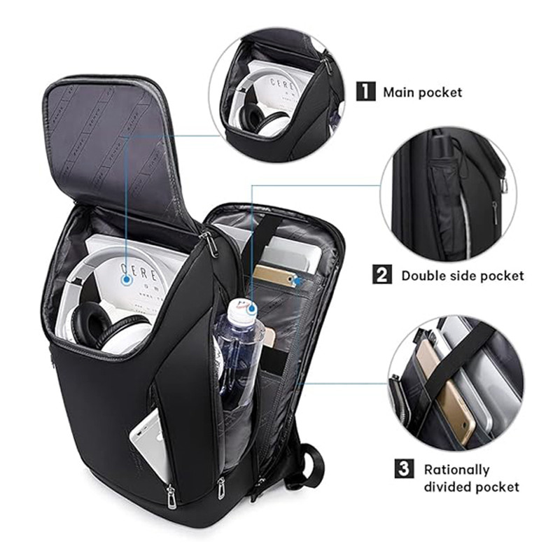 جیب بیرونی , جیب خودکار , دارای یک محفظه اصلی , محفظه نگهداری اسناد , محفظه نگهداری لپتاپ , جیب داخلی , محفظه کابل و شارژر , جای قمقمه , محفظه نگهداری کلید