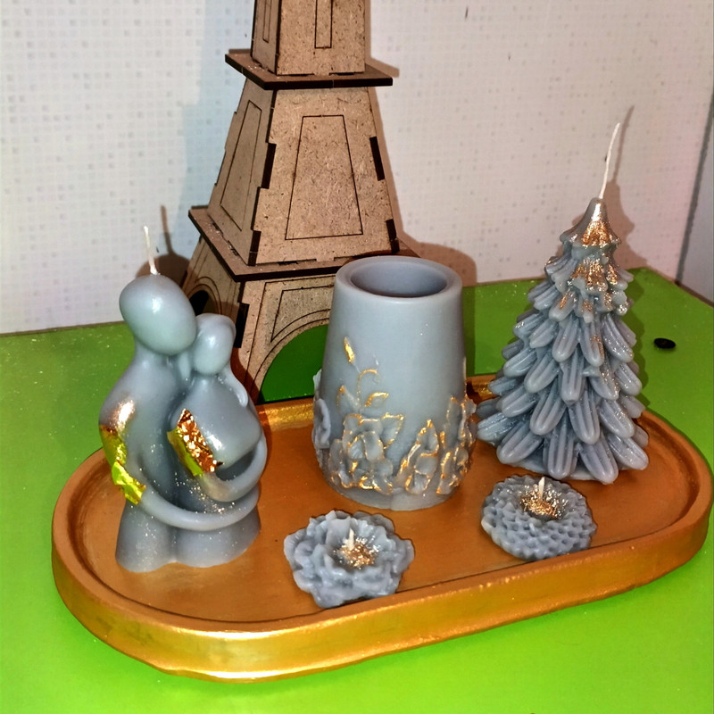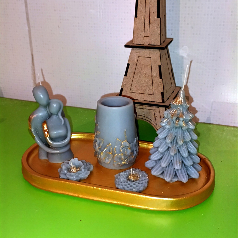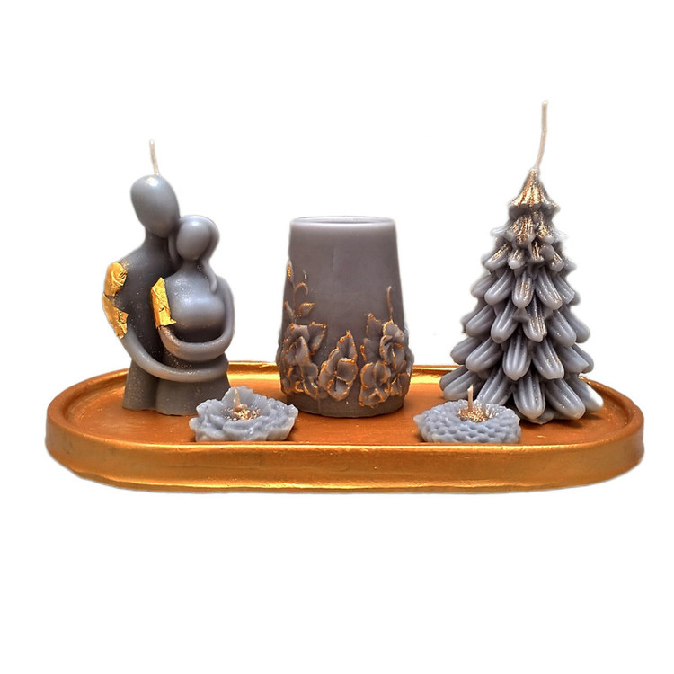 شمع آغوش ارتفاع 8 در 3 شمع کاج ارتفاع 8 در 5 گلدان ارتفاع 6 در 4 سینی 18 در 12 بسته بندی کاملا سالم با احتیاط باز شود