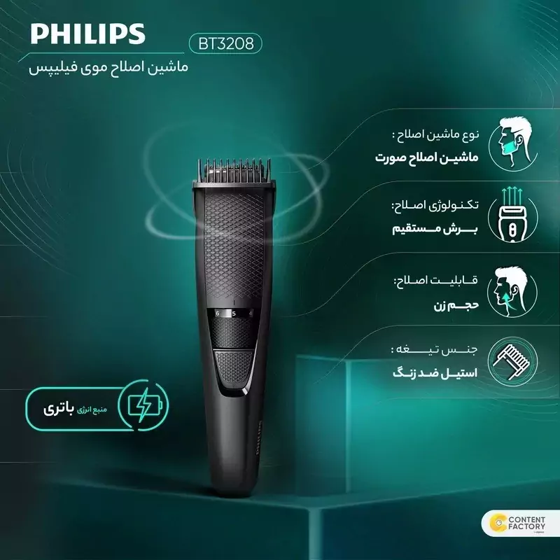 ماشین اصلاح موی صورت فیلیپس مدل BT3208