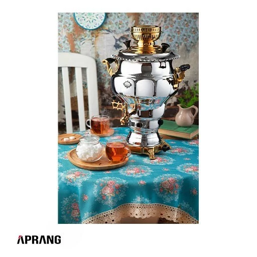سماور گازسوز عالی نسب مدل نقشینه نفیس طلائی ظرفیت 6 لیتر(لطفا با هماهنگی خرید بفرمایید)