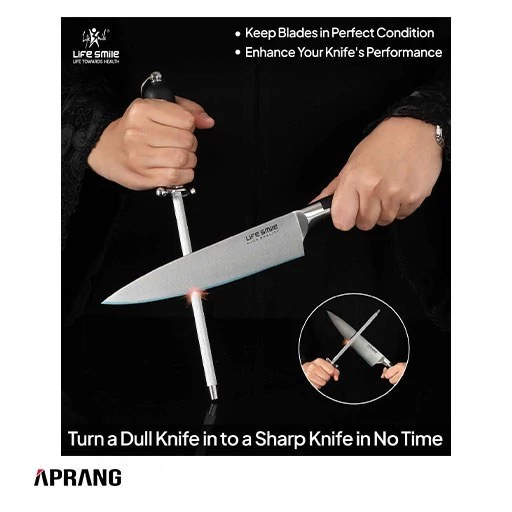 Properties: Secure Grip Handle, Space-Saving Storage Stand, Knife Sharpner, Extra Sharp