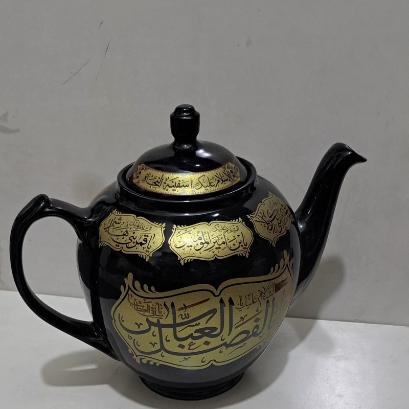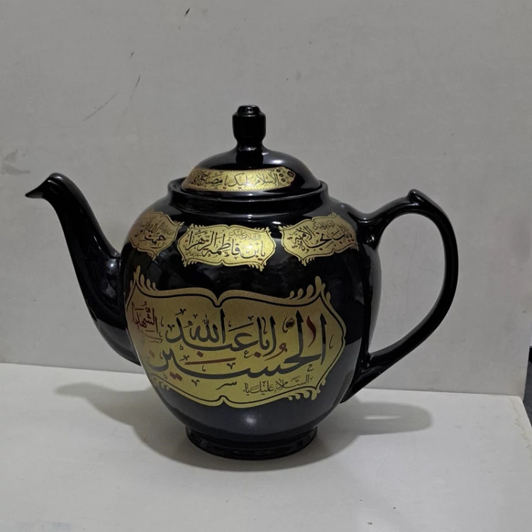 قوری دو و نیم لیتری مشکی منقش به نام یا اباعبدلله الحسین اهل بیت علیهم السلام مناسب فاطمیه و محرم