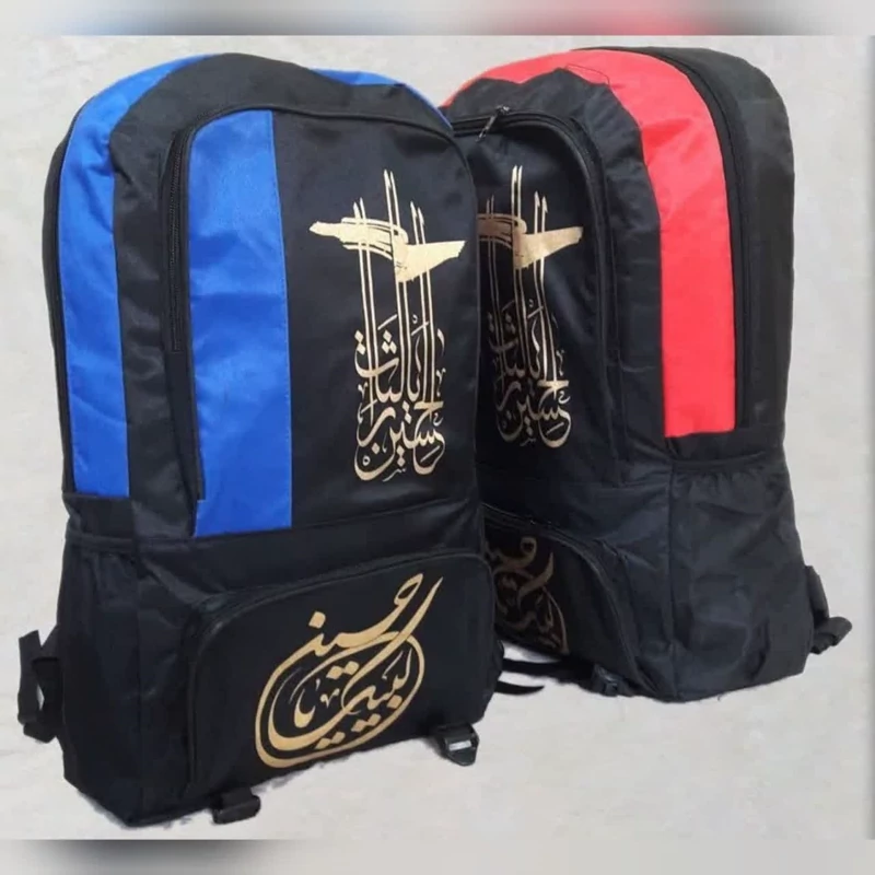 کوله پشتی مناسب پیاده روی اربعین با چاپ لبیک یاحسین اندازه حدودی 50 در 30 سانت