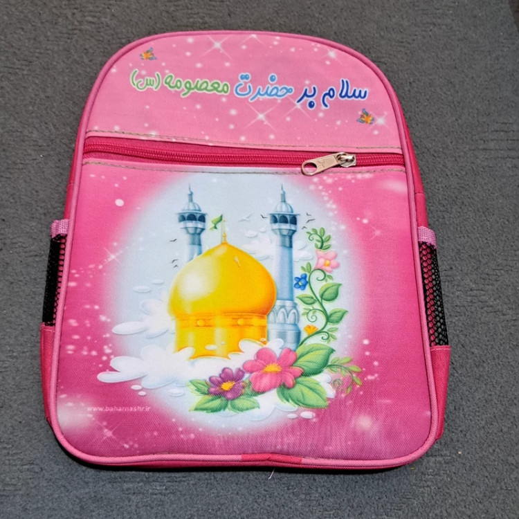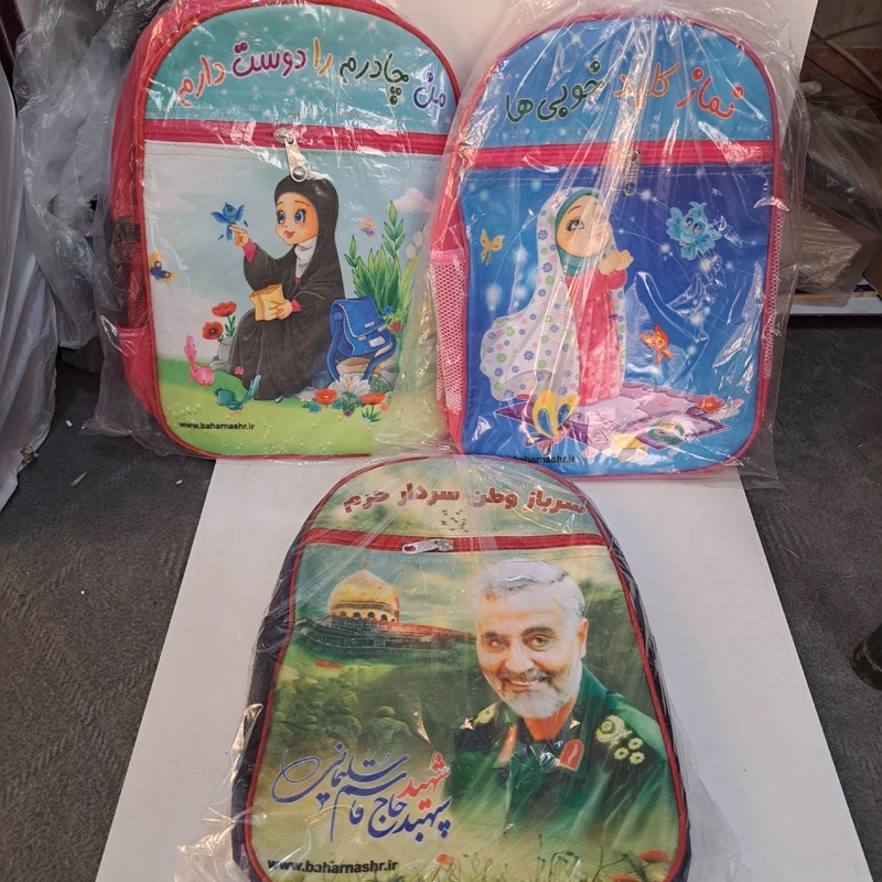کیف مدرسه پیش دبستانی و اول دبستان طرح حجاب نماز سردار سلیمانی طرح حرم حضرت معصومه س اندازه 35 در 25 دخترانه پسرانه