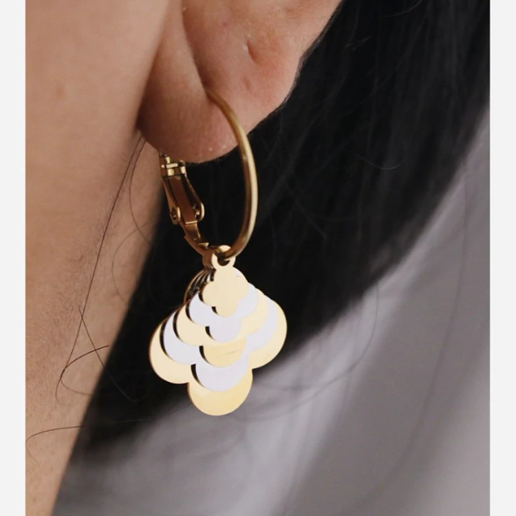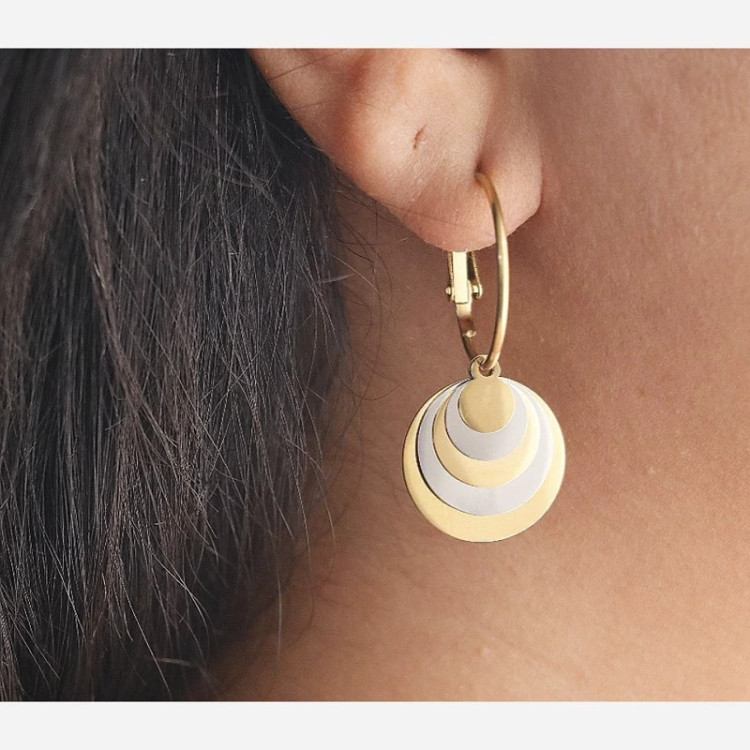بدلیجات گوشواره استیل حلقه ای دو رنگ