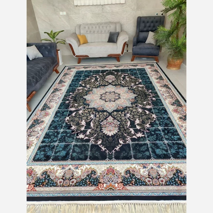 فرش 12 متری هیوا مشکی 700شانه تراکم 2100 مشکی نخ ورژن