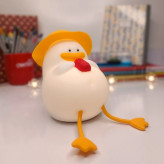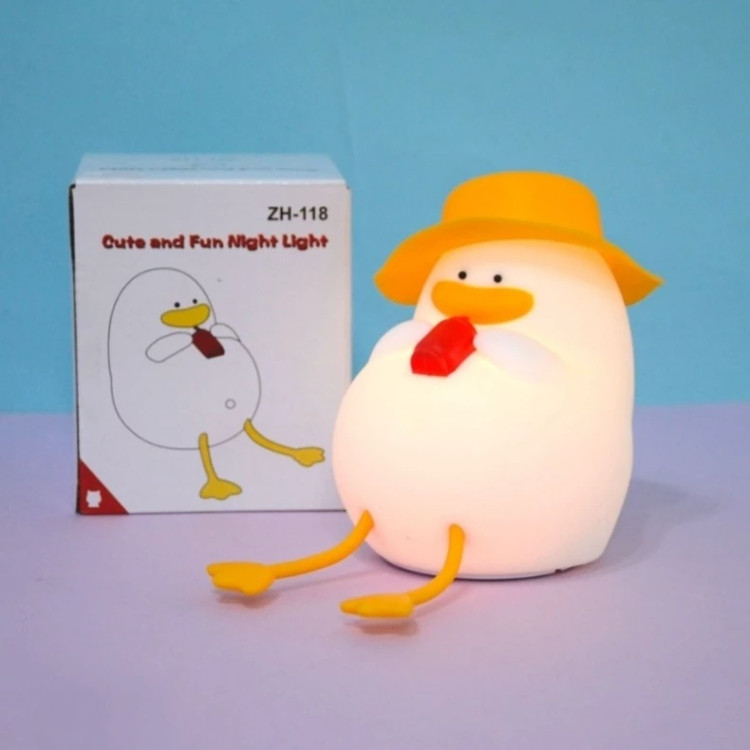 چراغ خواب سیلیکونی مدل اردک کلاه دار یک چراغ خواب فانتزی بسیار زیبا مناسب برای اتاق خواب است. این چراغ خواب، شارژی و قابل حمل است و با توجه به ظاهر نرم و عروسکی مانند آن، میتوان آن را داخل تخت خواب به همراه خود برد.