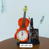 ساعت و جا قلمی رومیزی طرح گیتار و ویالن