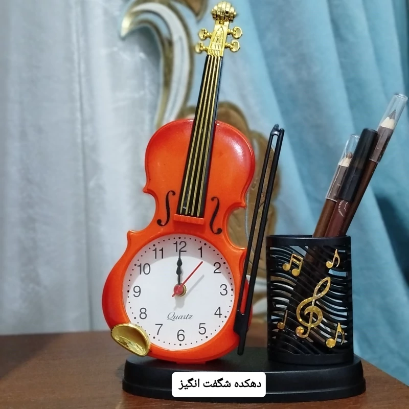 ساعت و جا قلمی رومیزی طرح گیتار و ویالن
