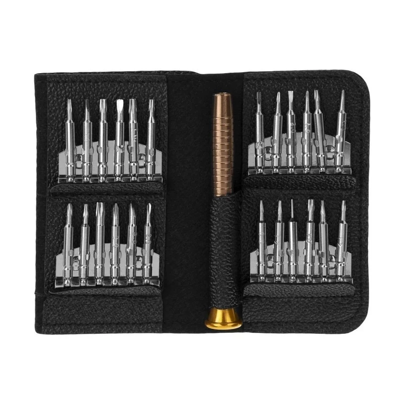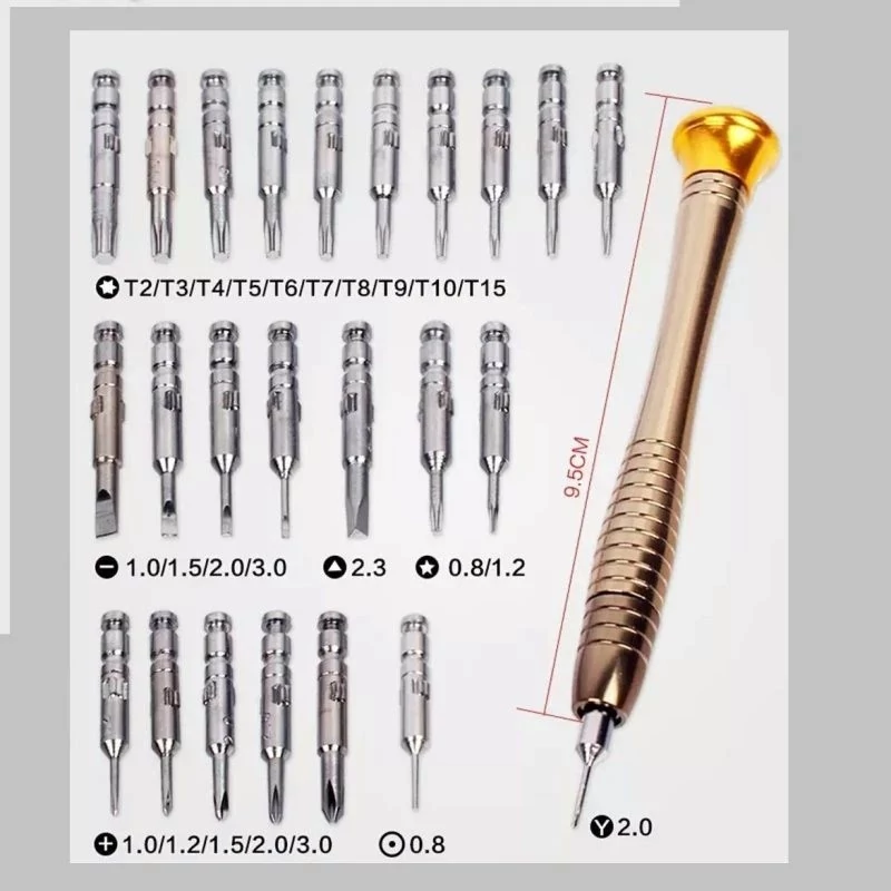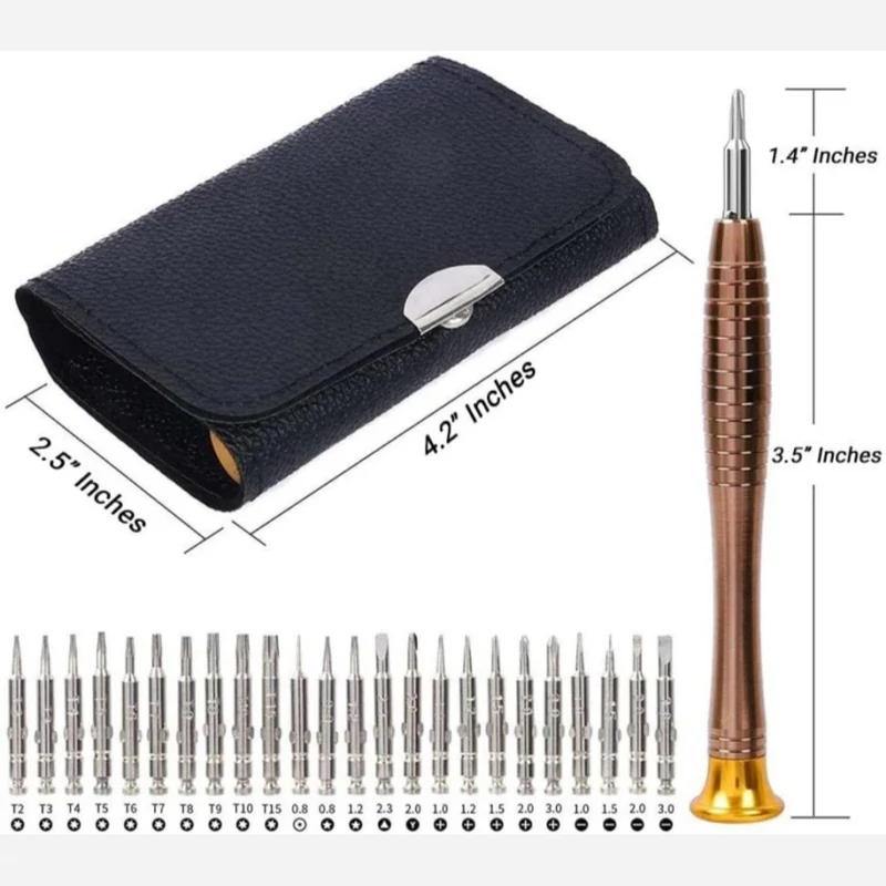 ✅1 عدد دسته پیچ گوشتی 1 عدد کیف سَری 6 گوش شامل : T2 ,T3 , T4 , T5 , T6 , T7 , T8 , T9 , T10 , T15 سَری 5 گوش(ستاره ای) شامل: 0.8 , 1.2 سَری 3 گوش(مثلثی) شامل: 2.3 سَری Y شکل شامل: 2.0 سَری 4 سو شامل: 1.0 , 1.2 , 1.5 , 2.0 , 3.0 سَری 2 سو شامل: 1.0 , 1.5 , 2.0 , 3.0 سَری گرد(نقطه ای): 0.8