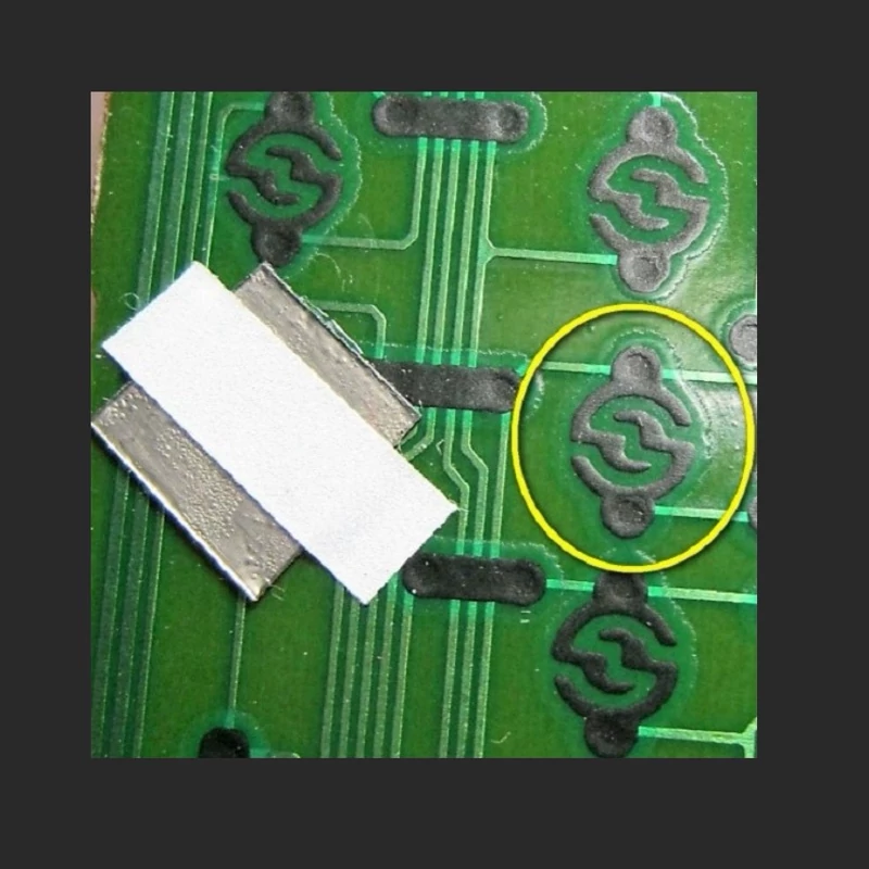 🔥موقع نصب طلق رسانا توجه داشته باشید طرف مشکی به طرف بالا یعنی به طرف شما و طرف نقره ای روی برد قرار بگیرد نکته مهم قبل از نصب طلق رسانا تمیز کردن کیت یا همان فیبر مدار چاپی میباشدکه حتما باید انجام شود،برای این کار میتوانید از،محلول استون یا تینر فوری به کمک پنبه استفاده نمایید،اگر شستشو بخوبی صورت نگیرد چرب بودن سطح کیت باعث میشود چسبی که روی رسانا قرار میدهید بعد مدتی از روی برد جدا شده و باعث جدا شدن رسانا از روی برد کنترل و جابجایی آن شود ضمنا توصیه میکنم اگر فرصت دارید لاستیک کنترل را نیز با آب و صابون یا مایع ظرفشویی تمیز نمایید.