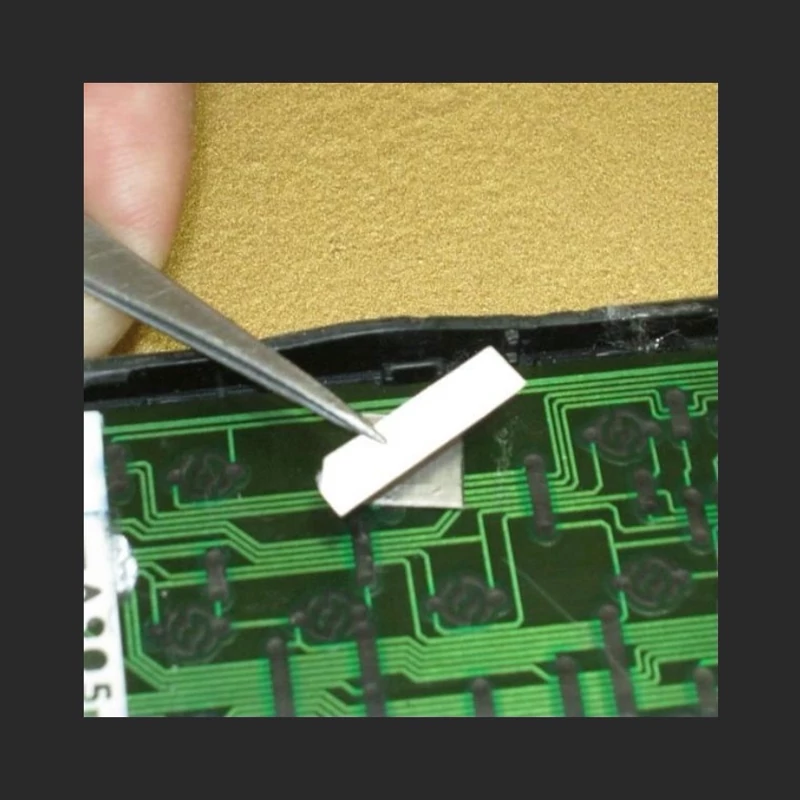 🔥موقع نصب طلق رسانا توجه داشته باشید طرف مشکی به طرف بالا یعنی به طرف شما و طرف نقره ای روی برد قرار بگیرد نکته مهم قبل از نصب طلق رسانا تمیز کردن کیت یا همان فیبر مدار چاپی میباشدکه حتما باید انجام شود،برای این کار میتوانید از،محلول استون یا تینر فوری به کمک پنبه استفاده نمایید،اگر شستشو بخوبی صورت نگیرد چرب بودن سطح کیت باعث میشود چسبی که روی رسانا قرار میدهید بعد مدتی از روی برد جدا شده و باعث جدا شدن رسانا از روی برد کنترل و جابجایی آن شود ضمنا توصیه میکنم اگر فرصت دارید لاستیک کنترل را نیز با آب و صابون یا مایع ظرفشویی تمیز نمایید.