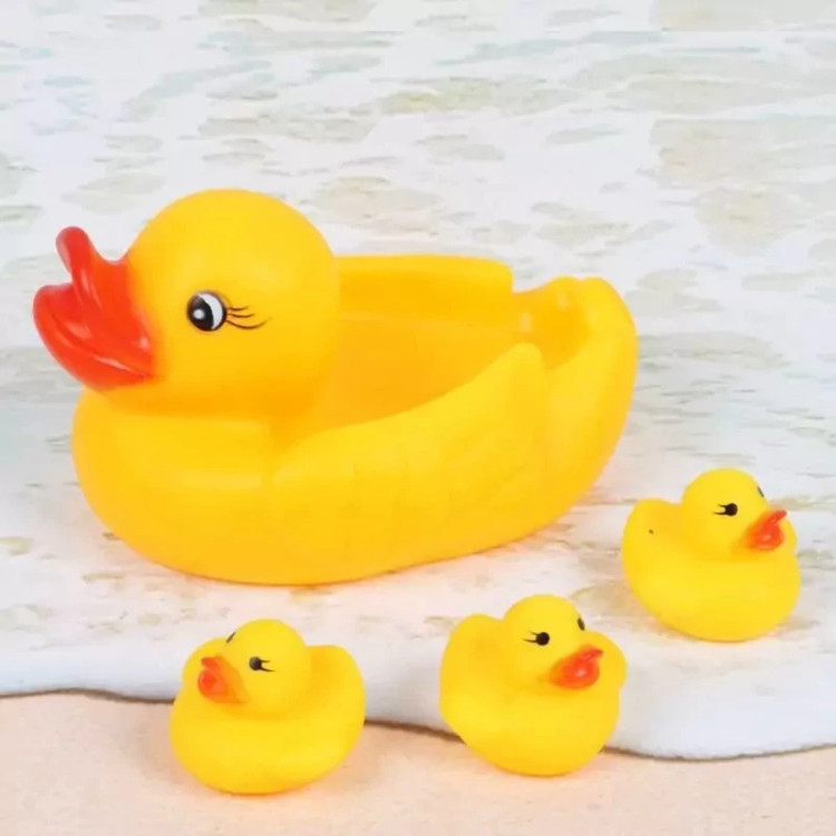 عروسک حمام کودک طرح اردک مجموعه 4 عددی (مادر اردک به همراه 3 تا بچه اردک)،مناسب برای رده سنی کودک (تخفیف ویژه)