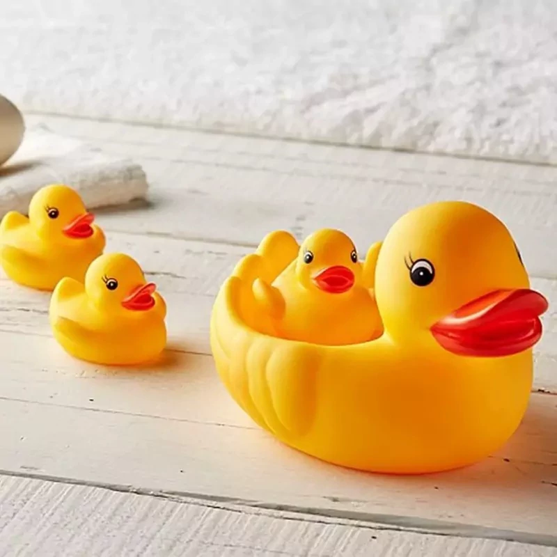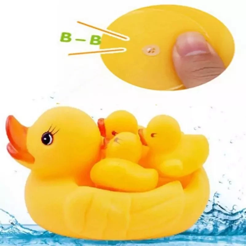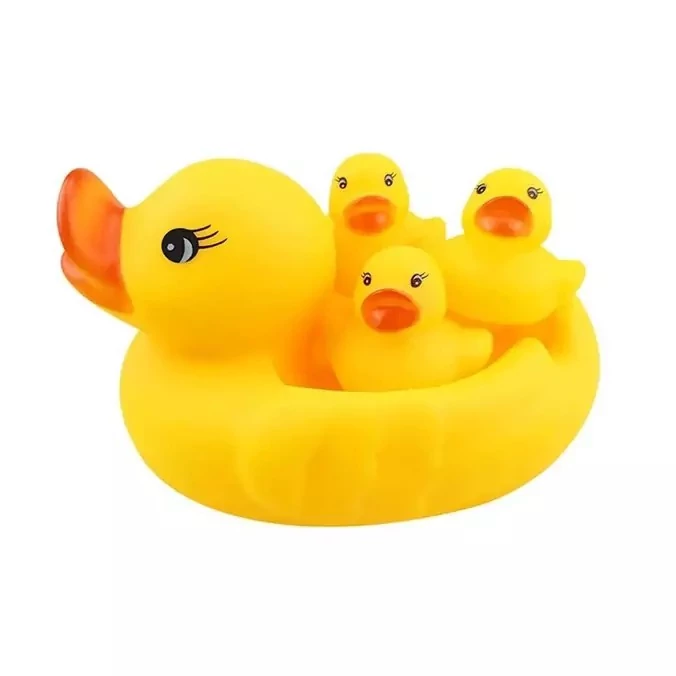 عروسک حمام کودک طرح اردک مجموعه 4 عددی (مادر اردک به همراه 3 تا بچه اردک)،مناسب برای رده سنی کودک (تخفیف ویژه)
