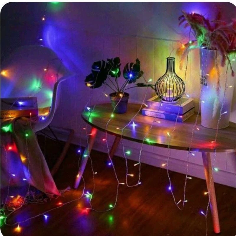 ✅ریسه 10 متری با 100عدد لامپ LED،نورهای سوزنی در چند رنگ مختلف و مختلط به رنگهای قرمز.سبز.آبی و زرد مناسب تزیینات تولد،مجالس و اتاق خواب