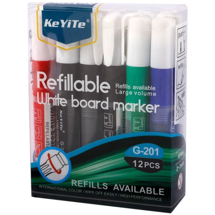 ماژیک وایت برد تک سر نوک گرد شارژی برند کی ایت مدل KEYITE G-201،دارای یک مخزن جوهر بزرگ،بسته 1 عددی (تخفیف ویژه)