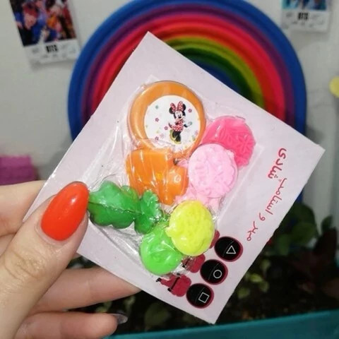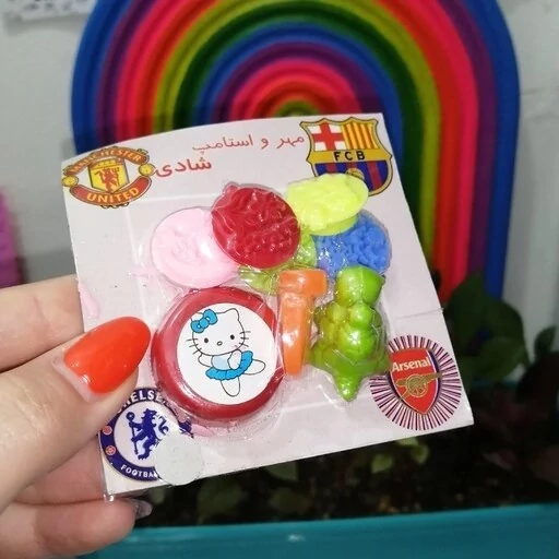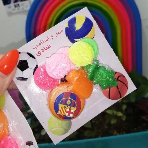 مهر تشویقی کودکان در 5 طرح متنوع،به همراه یک استامپ کوچک و یک پایه برای مهر ها،مجموعه 5 عددی،مهر ژلاتینی (تخفیف ویژه)
