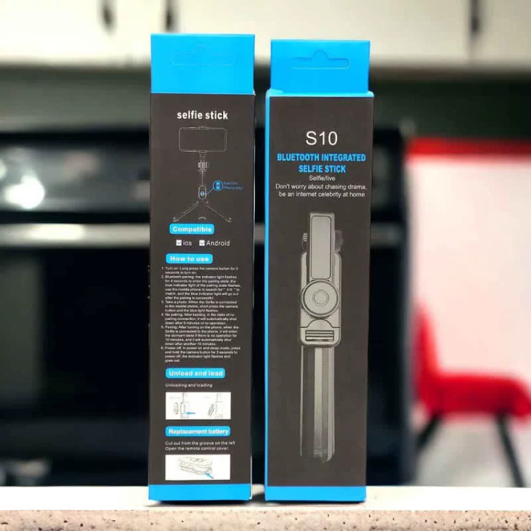 سه پایه و مونوپاد بلوتوثی حرفه ای مدل S10،دارای ریموت کنترل از راه دور،قابلیت چرخش 360 درجه،پایه های محکم و ضد لغزش
