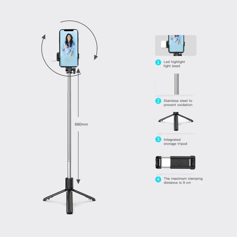 سه پایه و مونوپاد بلوتوثی حرفه ای مدل S10،دارای ریموت کنترل از راه دور،قابلیت چرخش 360 درجه،پایه های محکم و ضد لغزش