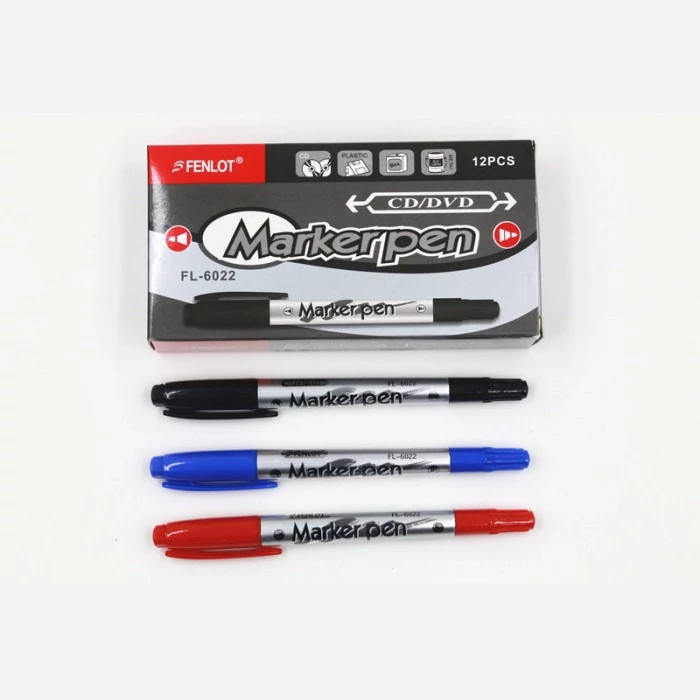 ماژیک سی دی دوسر Marker pen مدل FL-6022،یک طرف نازک و طرف دیگر ضخیم،برای مصرف دارو خانه ها،برای نوشتن روی انواع CD و DVD
