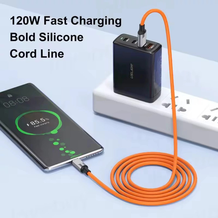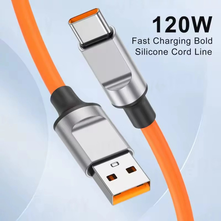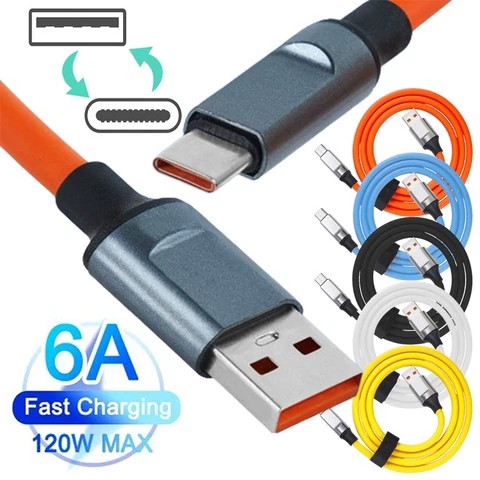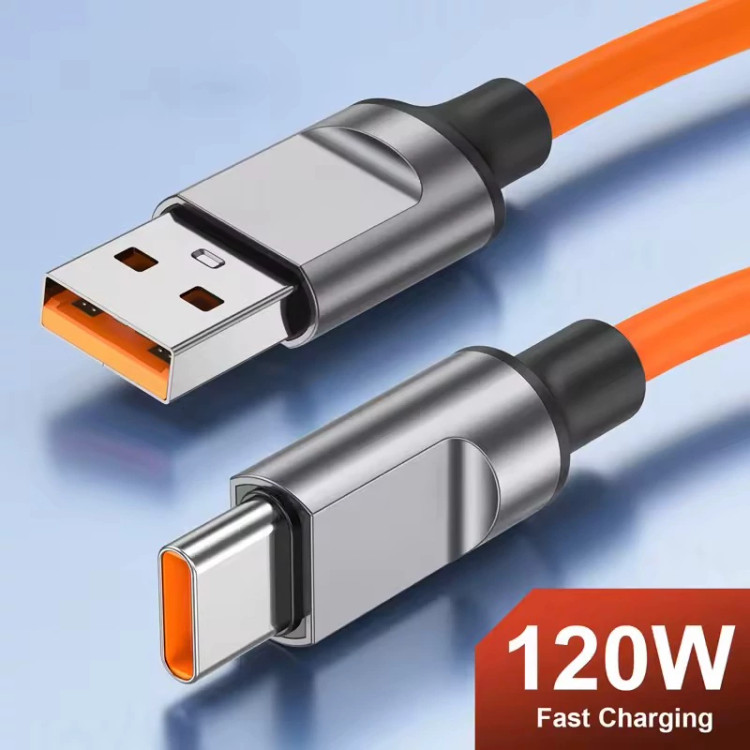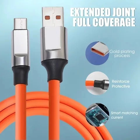 کابل شارژ فست شارژ تایپ سی (120 وات 6 آمپر) سر سوکت نارنجی،امکان انتقال اطلاعات،دارای روکش سیلیکونی،جنس اورجینال و اصلی