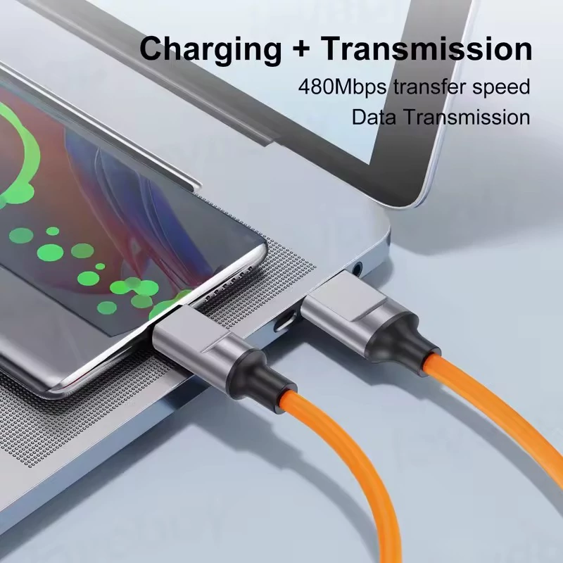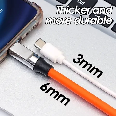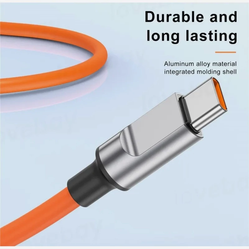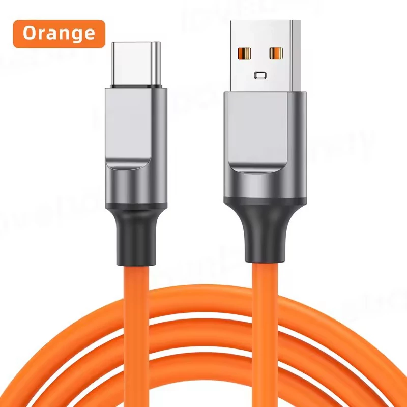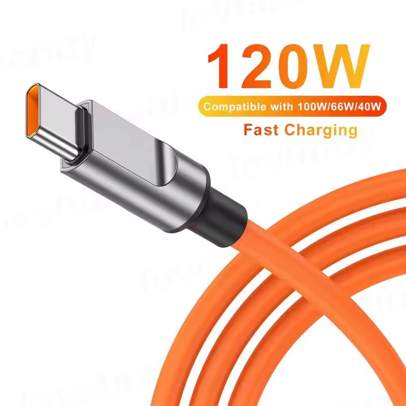 کابل شارژ فست شارژ تایپ سی (120 وات 6 آمپر) سر سوکت نارنجی،امکان انتقال اطلاعات،دارای روکش سیلیکونی،جنس اورجینال و اصلی