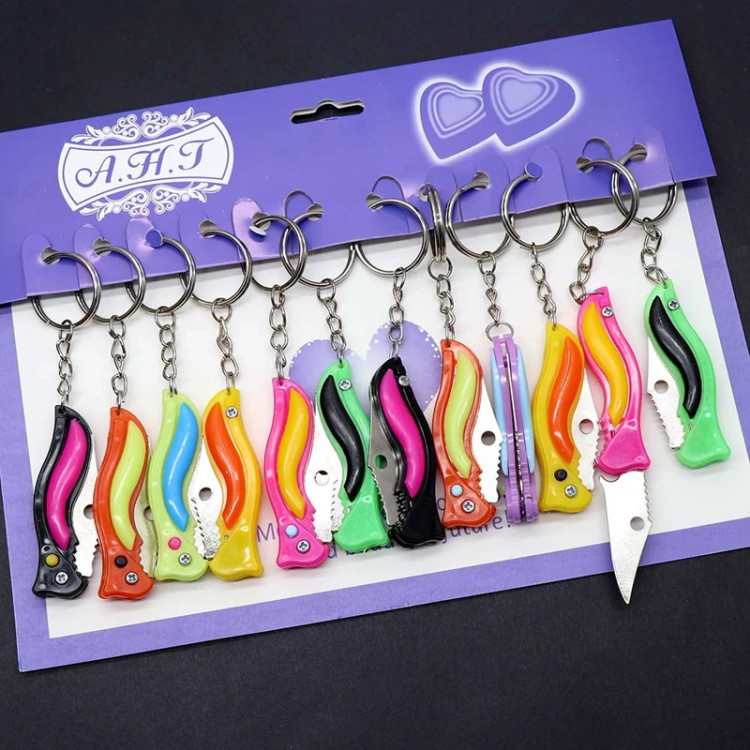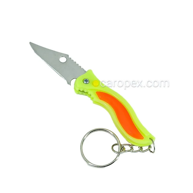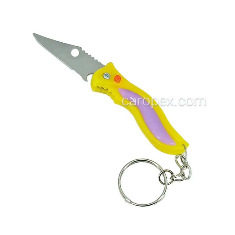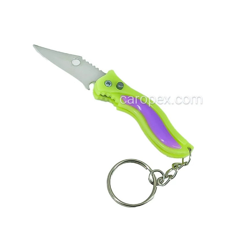 جاکلیدی فانتزی مدل چاقو دکمه ای دسته پلاستیکی،مناسب برای استفاده دکوری و برش،عرضه شده در رنگهای متنوع با ابعاد کوچک