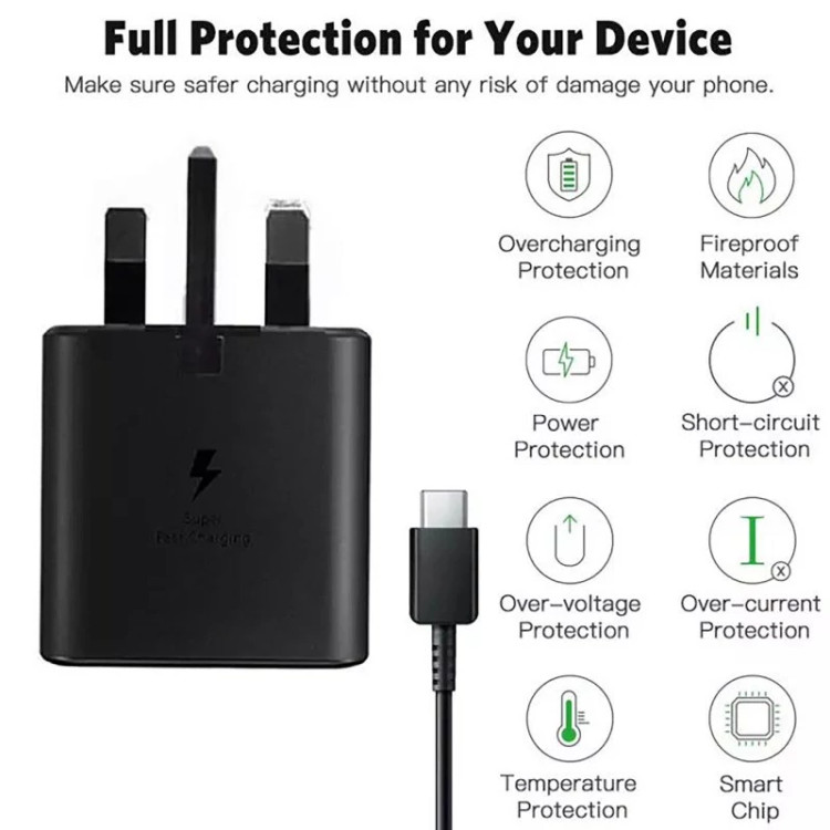 ✅شارژر دیواری « EP-TA800» محصول شرکت سامسونگ است. این شارژر دیواری دارای فناوری PD 3.0 است که با استفاده از آن می توانید دستگاه خود را با سرعت بیشتر و با توان 25 وات شارژ کنید. xنکته= (البته برای شارژ با سرعت بالا، دستگاه شما هم باید از فناوری PD 3.0 پشتیبانی کند.) شدت جریان خروجی این شارژر برابر با 3 آمپر است که می توان از آن برای شارژ کردن تبلت هم استفاده کنید. برای این شارژر از چیپ هوشمندی استفاده شده تا با اتصال دستگاه به صورت خودکار جریان مناسب را برای دستگاه تامین کند. درگاه خروجی این محصول هم از نوع USB-C است. البته همراه با این شارژر یک کابل تبدیل USB-C به USB-C به طول یک متر هم ارائه میشود. گفتنی است که این شارژر ابعاد کوچکی دارد و فضای کمی را اشغال میکند. این ویژگی برای افرادی که قصد دارند شارژر را در کیفشان قرار دهند کارایی دارد.