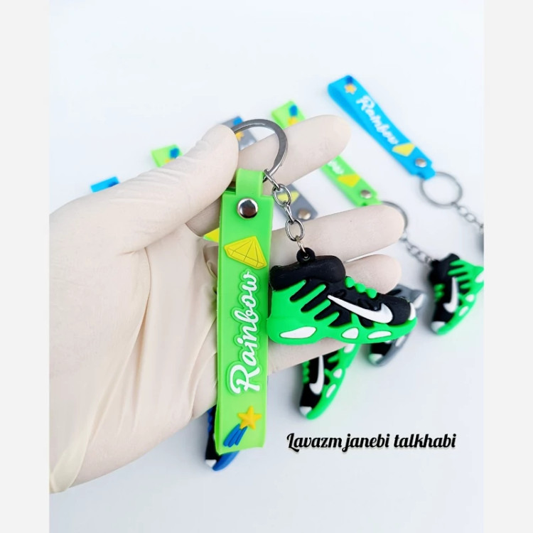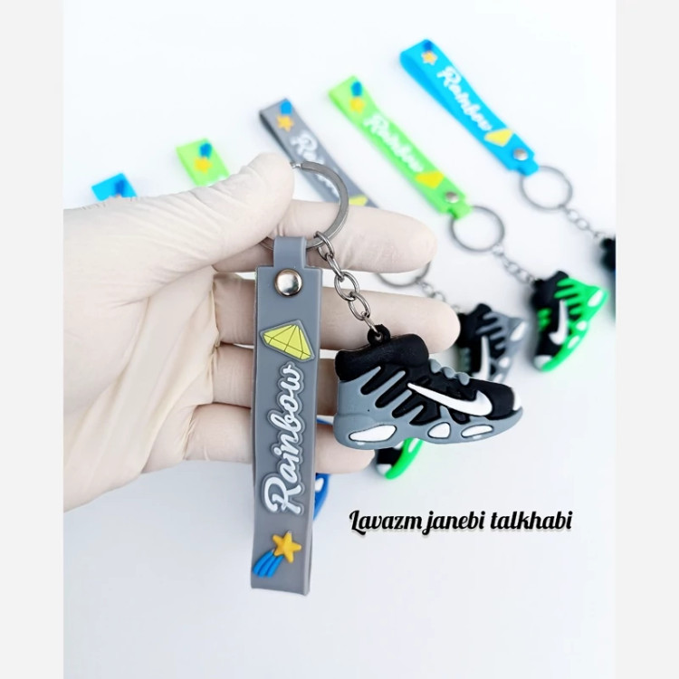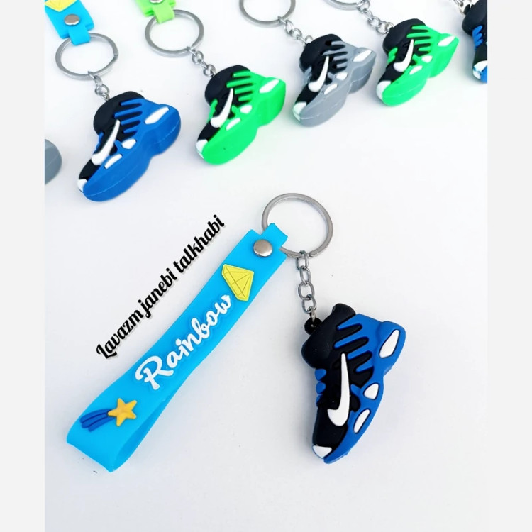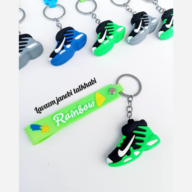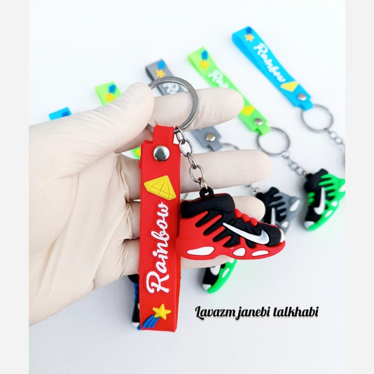جاکلیدی سیلیکونی وارداتی طرح کفش اسپورت (کتونی نایکی) همراه با بند سیلیکونی،بسته 1 عددی (تخفیف ویژه)